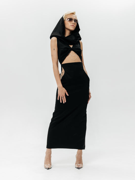 Sukienka Moon z kapturem (czarna, maxi)